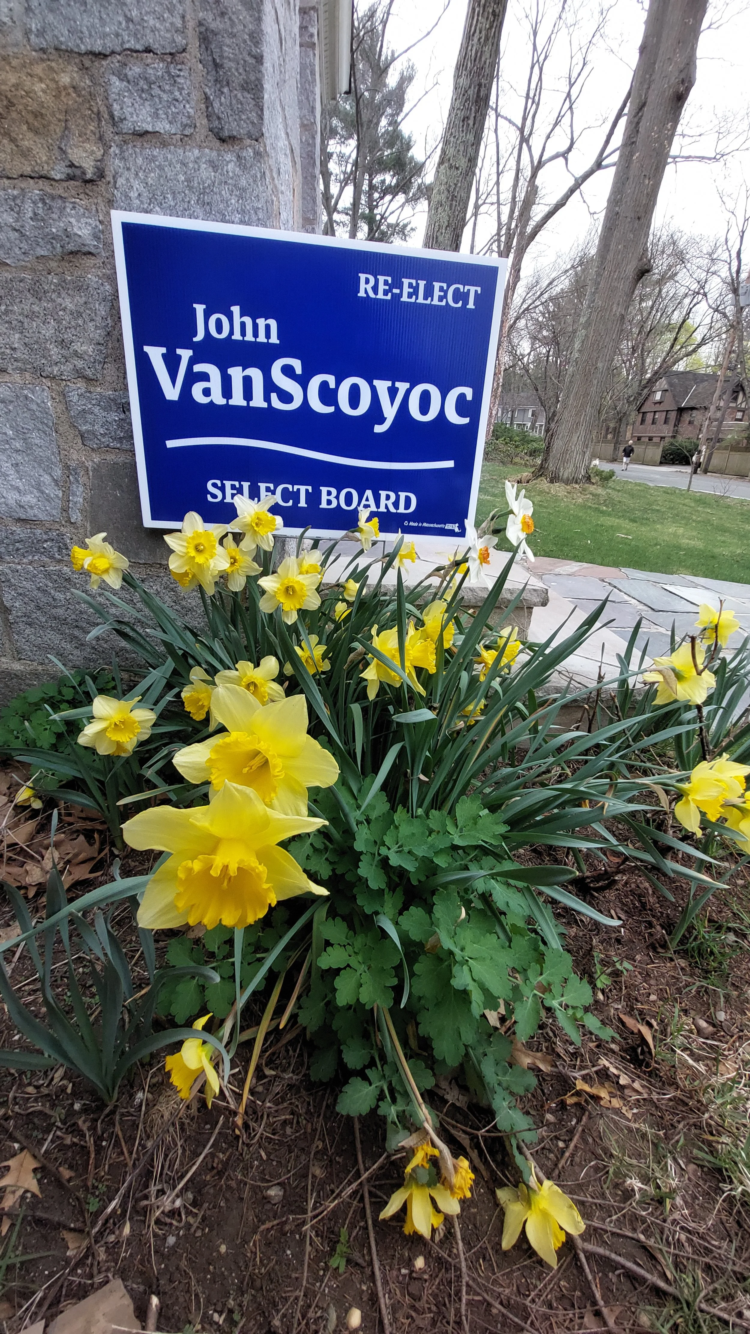 As a supporter of John VanScoyoc’s campaign for re-election to the Select Board, I’m contacting my email friends to urge you to vote for John in the Tuesday, May 2 Town Election.